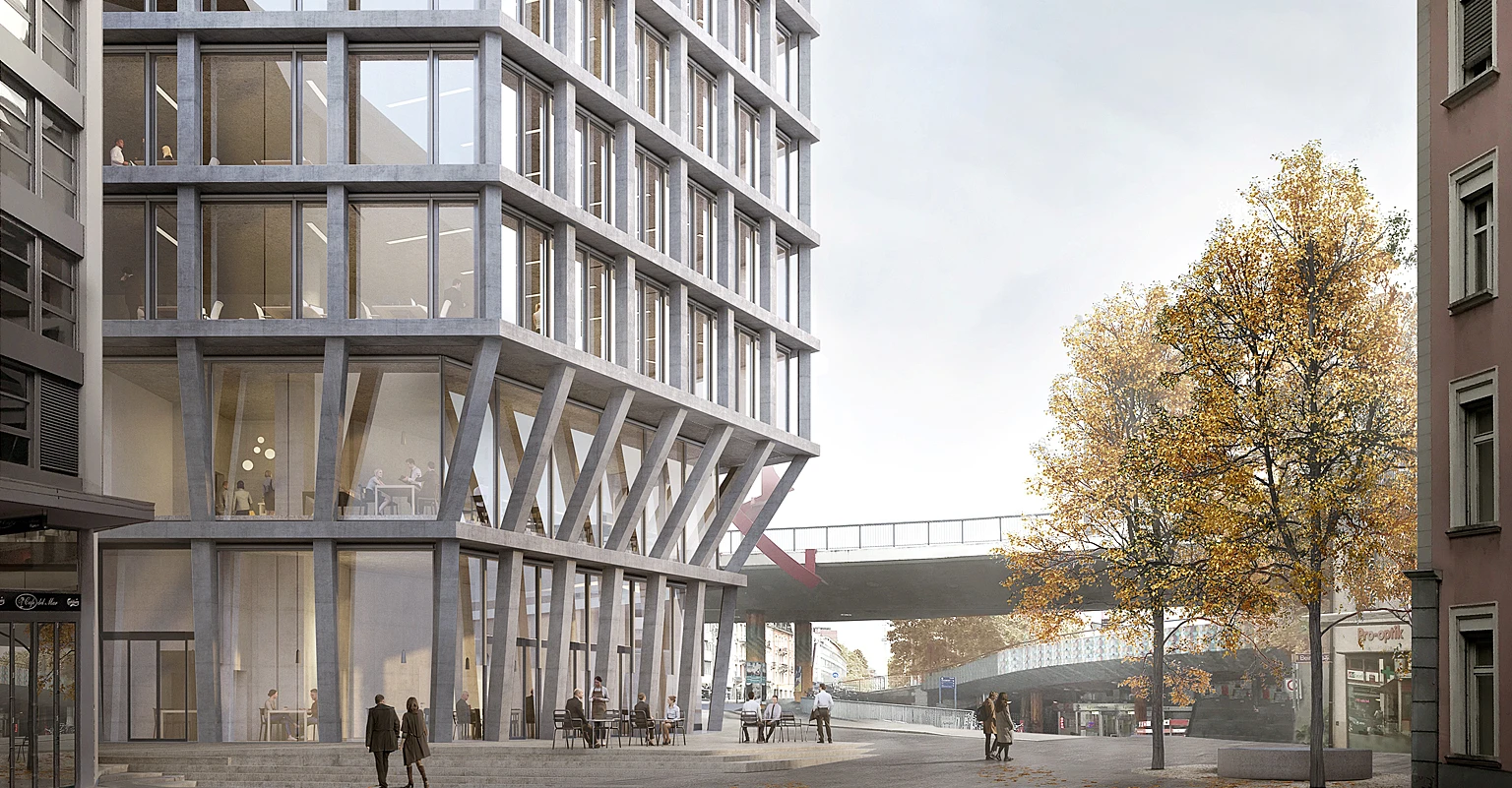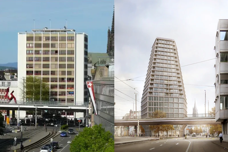 Für den Neubau wurde 2017 ein Architekturwettbewerb durchgeführt, den die Basler Architekten Miller & Maranta für sich entschieden. Das neu freistehende Hochhaus schafft eine städtebauliche Aufwertung an der Heuwaage und einen Mehrwert für die gesamte Steinenvorstadt sowie die Basler Bevölkerung. Das umlaufend zugängliche Erdgeschoss mit einem Platzbereich zur Steinenvorstadt bildet den Auftakt zur städtebaulichen Entwicklung des Heuwaage-Areals und des gesamten Birsig-Bogens. Zur Steinenvorstadt hin entsteht ein Platz, der zum Verweilen einlädt.